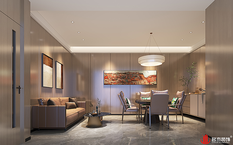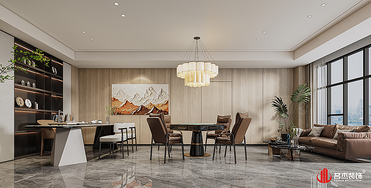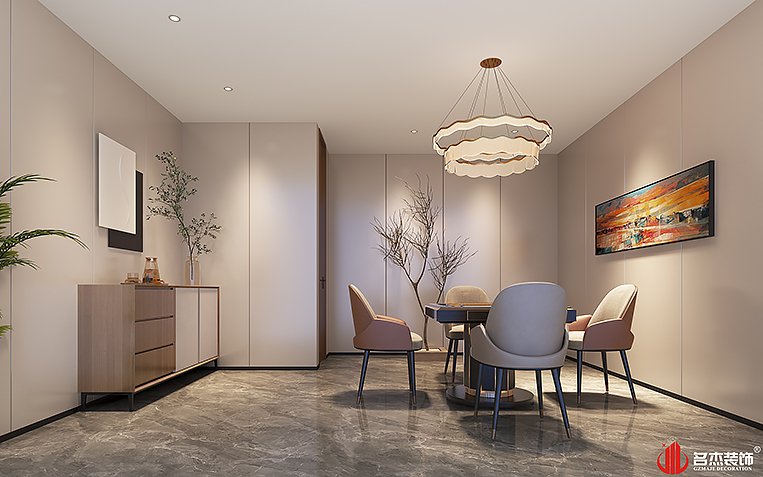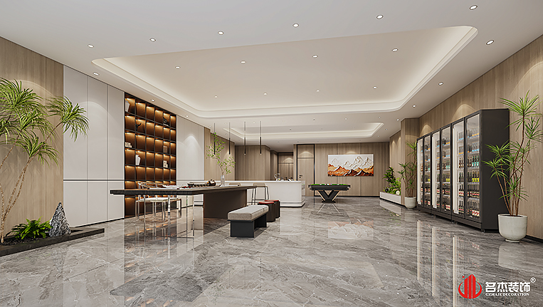 空間中的前臺接待區(qū)域使用造景的設計手法,來突出風生水起的設計重點,配合前臺背景墻使用的碳晶板,以及燈條作為點綴設計元素,搭配出不一樣的裝修設計效果。對于棋牌休閑空間來說,燈光是非常重要的元素之一,因此設計團隊也著重在這方面上的設計,通過使用造型不同的燈具,為空間增加了不少的時尚潮流感。#廣州公裝裝修公司#